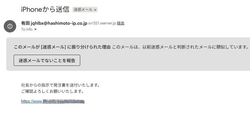 これまでの迷惑メールとは違って「ビジネスメール」でありそうなシンプルな文面になっています。