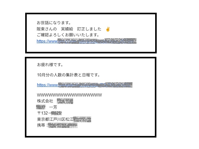 また、送信者名も知り合いの多い人だと、やりとりの中に居そうな名前でした。